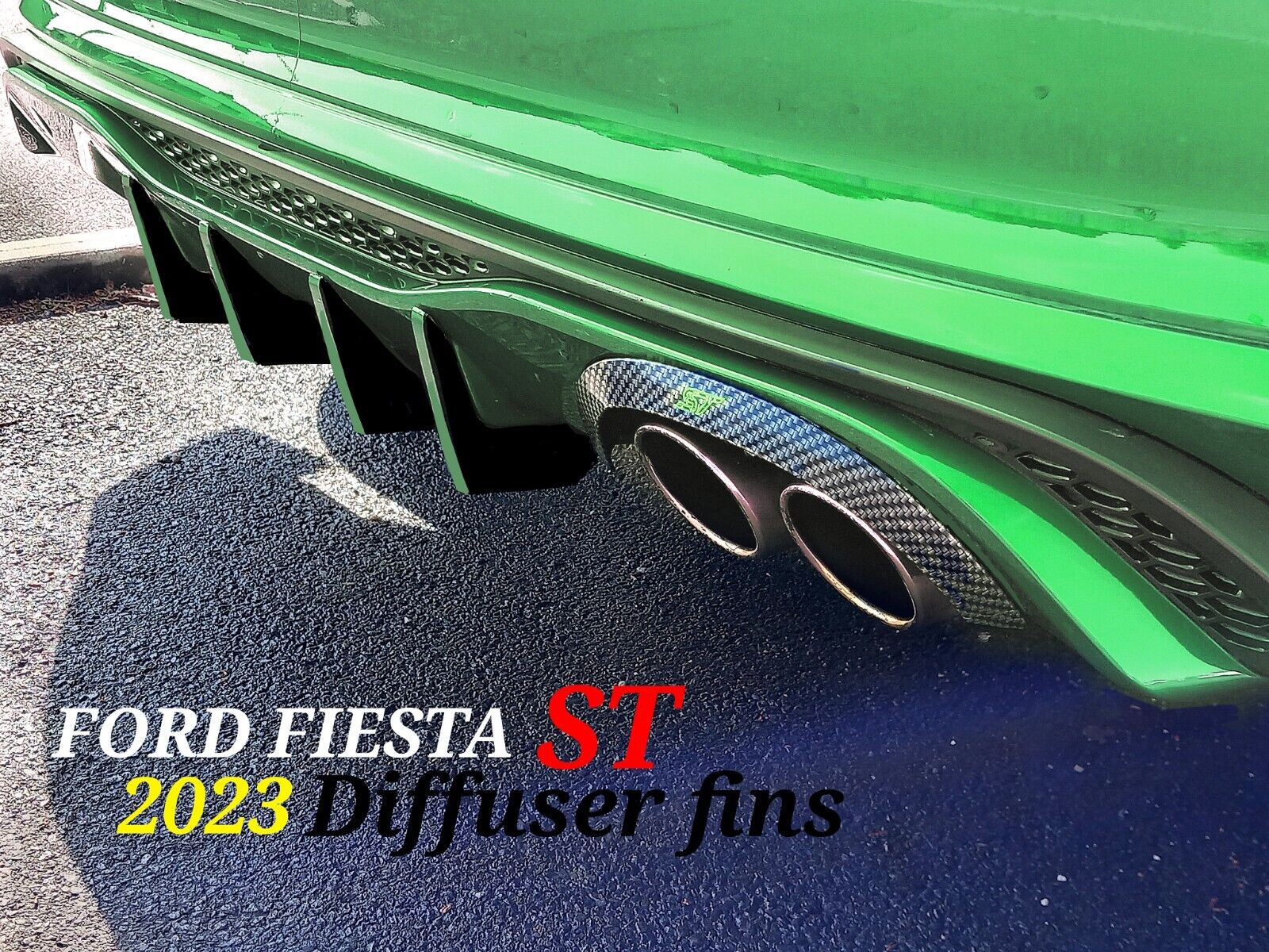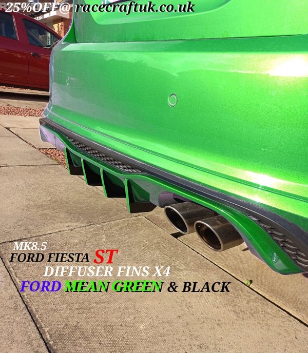 Ford Fiesta ST MK8 Diffuser Fins x4.”WITH GLOSS BACK &  CUSTOM FORD, MEAN GREEN TRIM”