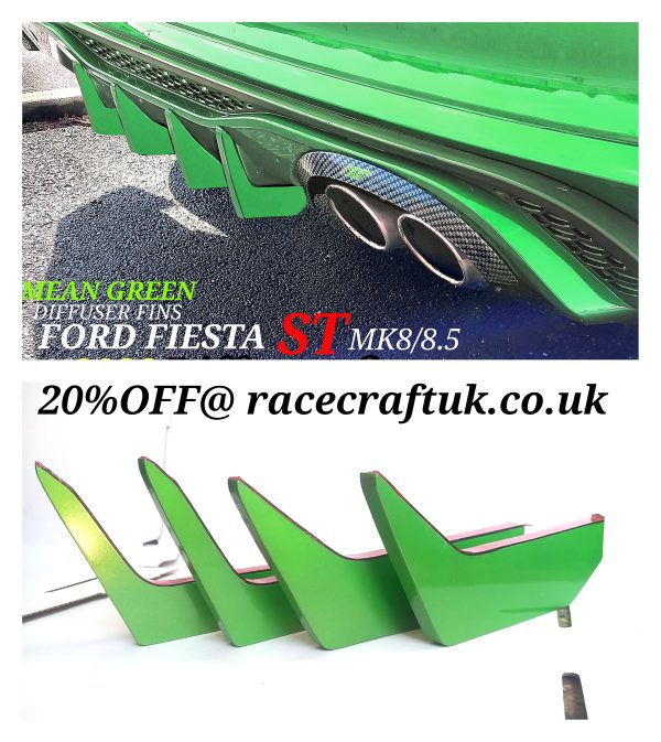 4x DIFFUSSER FINS finished in solid custom painted FORD MEAN GREEN